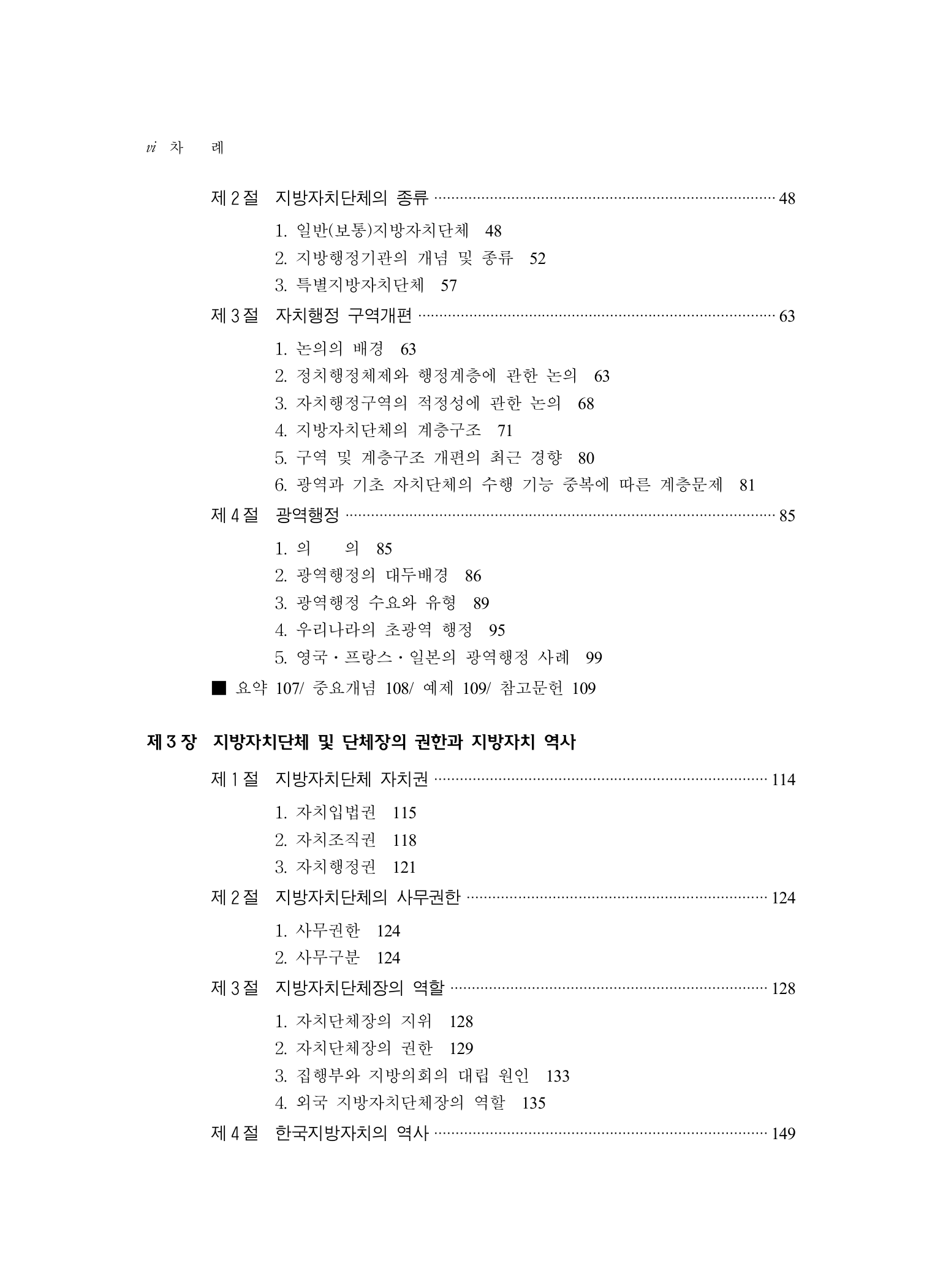 이와 같은 문제의식 아래, 제17판은 지방자치를 ‘제도’, ‘정책’, ‘민주주의’, ‘공동체’라는 네 개의 축을 중심으로 재정비하였습니다. 변화된 정치·사회적 환경을 반영하여 기존 내용을 보완·수정하는 한편, 한국의 지방자치가 앞으로 나아가야 할 방향에 대한 규범적·실천적 논의를 보다 분명히 제시하고자 하였습니다.