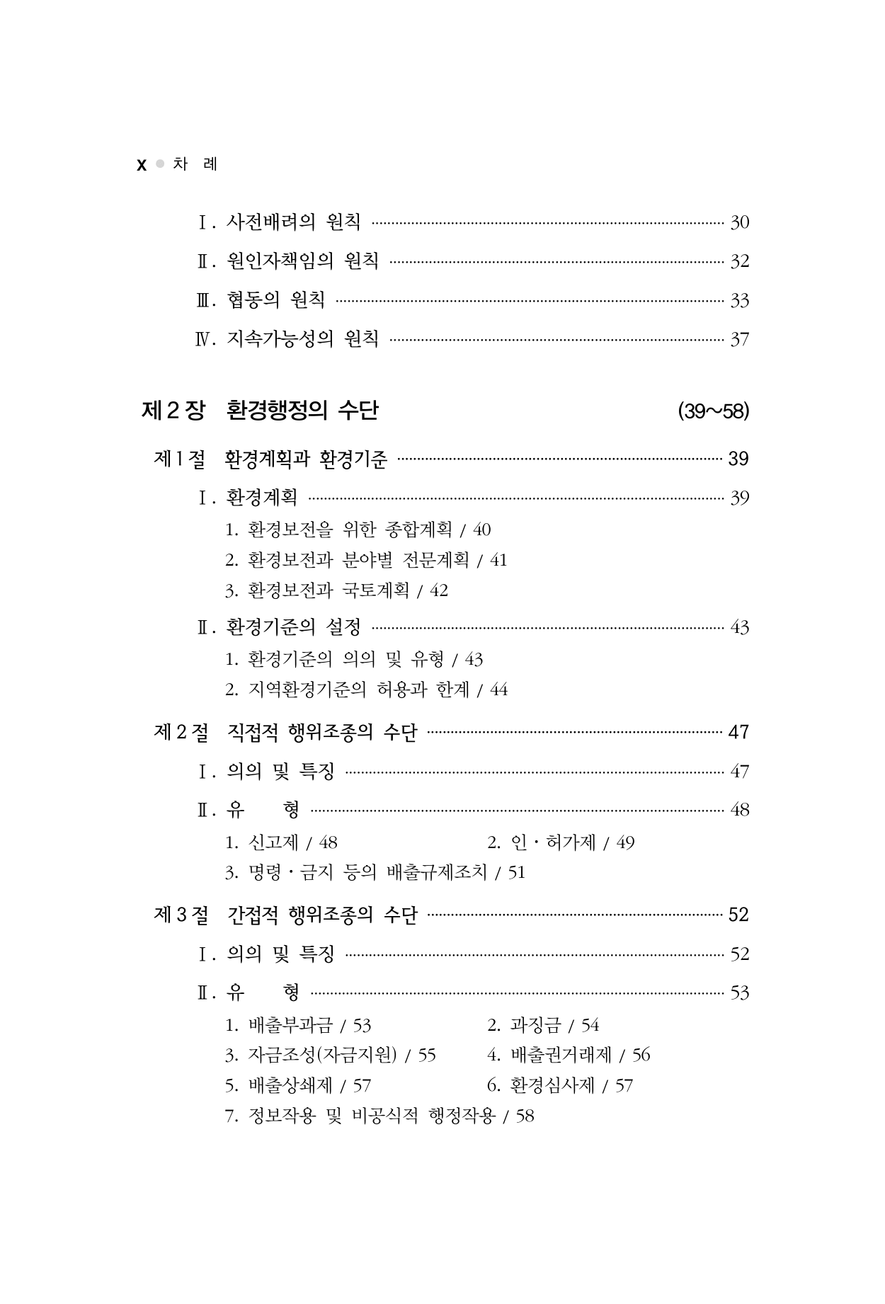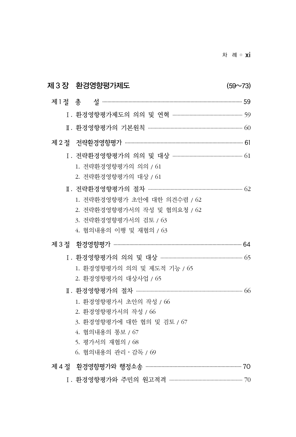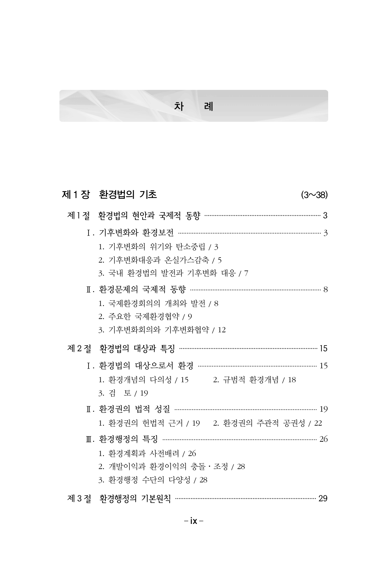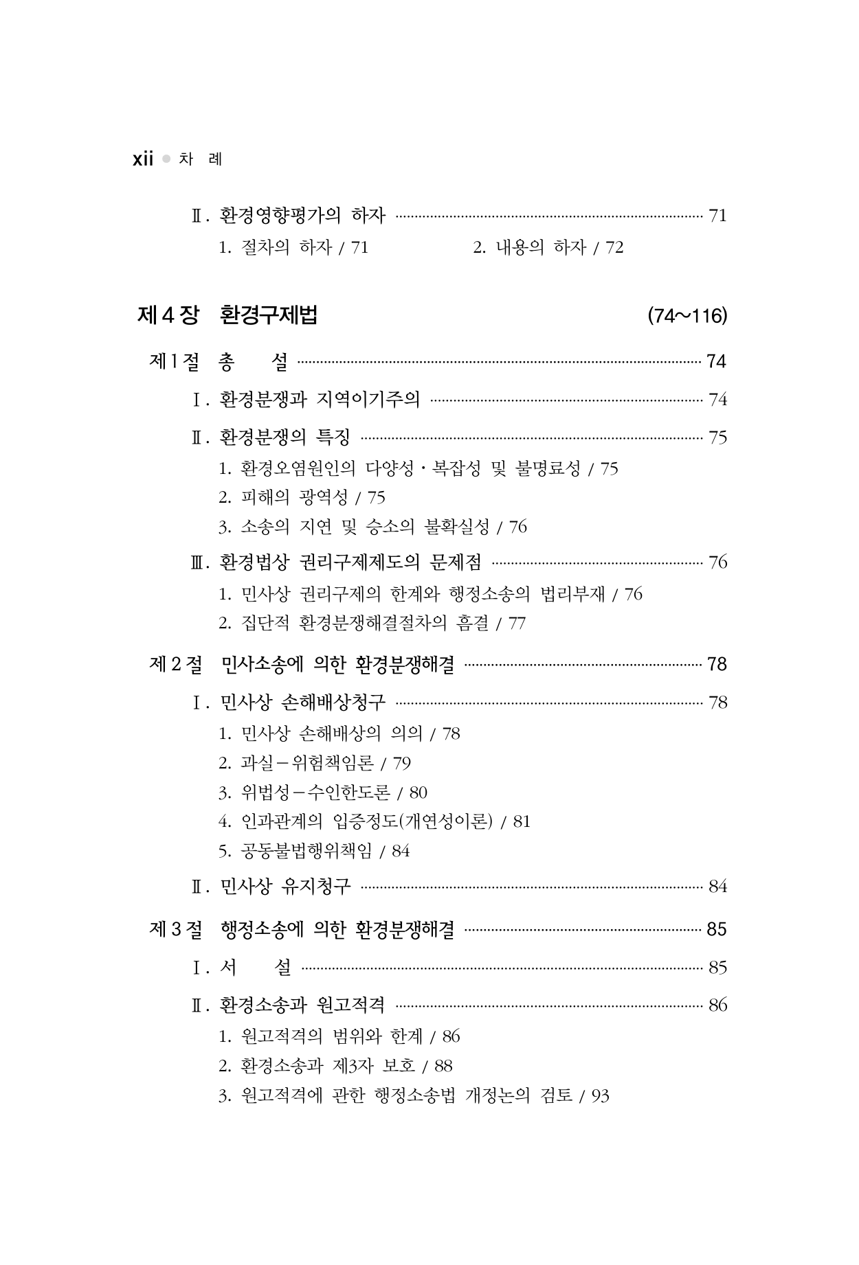 본서의 목적은 한결같다. 독자들에게 환경법의 내용을 쉽고 명쾌하게 소개하는 것이다. 환경법은 기술법의 성격을 가지지만, 여전히 그 본질은 규범의 영역에 속한다. 복잡다기한 환경법의 영역은 빨리 진화하고 있어, 완결된 입법을 실현하기가 쉽지 않다. 이러한 특성 때문에 법해석에 있어서 어려운 점이 적지 않다. 환경규제는 대부분 행정규제이며, 행정작용의 성격을 가진다. 개별 법령의 인․허가나 신고 등이 모두 동일한 법적 성질을 가진다고 보기 어렵다. 그런 이유에서 본서에서는 일반적인 교재에서 다루지 아니한 쟁점에 대해서도 언급하였다.