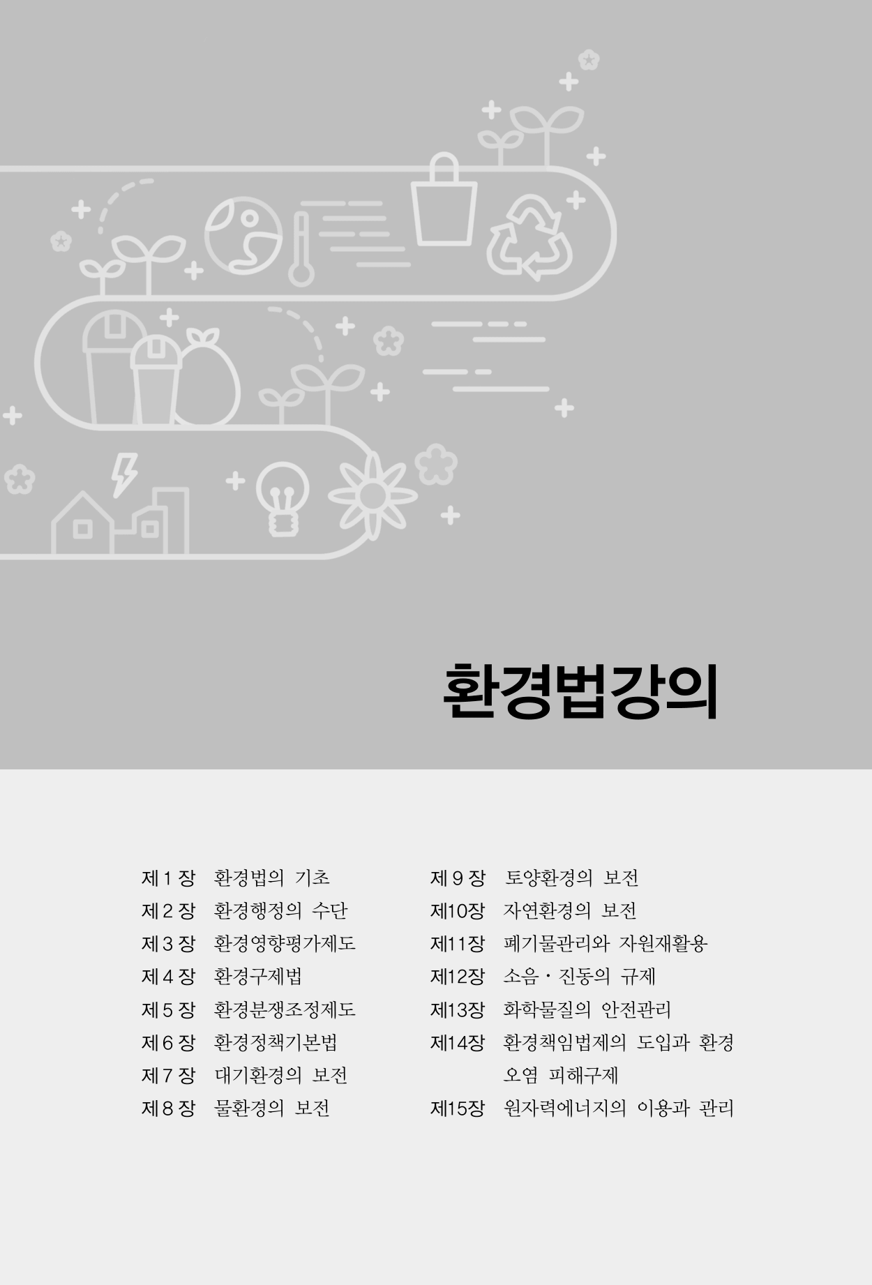 환경법강의 제3판은 작년 초에 제2판을 출간하였기에 약간의 오․탈자를 수정하여 증쇄를 낼 생각이었으나, 새 정부의 출범에 따른 정부조직법의 개편으로 부득이 개정판을 서둘러 출간하게 되었다. 무엇보다 환경부는 ‘기후에너지환경부’로 개편되었고, 기존의 산업통상자원부(산업통상부로 개편)가 담당하던 에너지(원자력발전 수출 부문제외) 사무를 기후에너지환경부로 이관하게 되었다. 이에 따라 환경법령에도 다소의 변화가 생겼고, 제3판에서는 이러한 변화를 반영하려고 노력하였다.