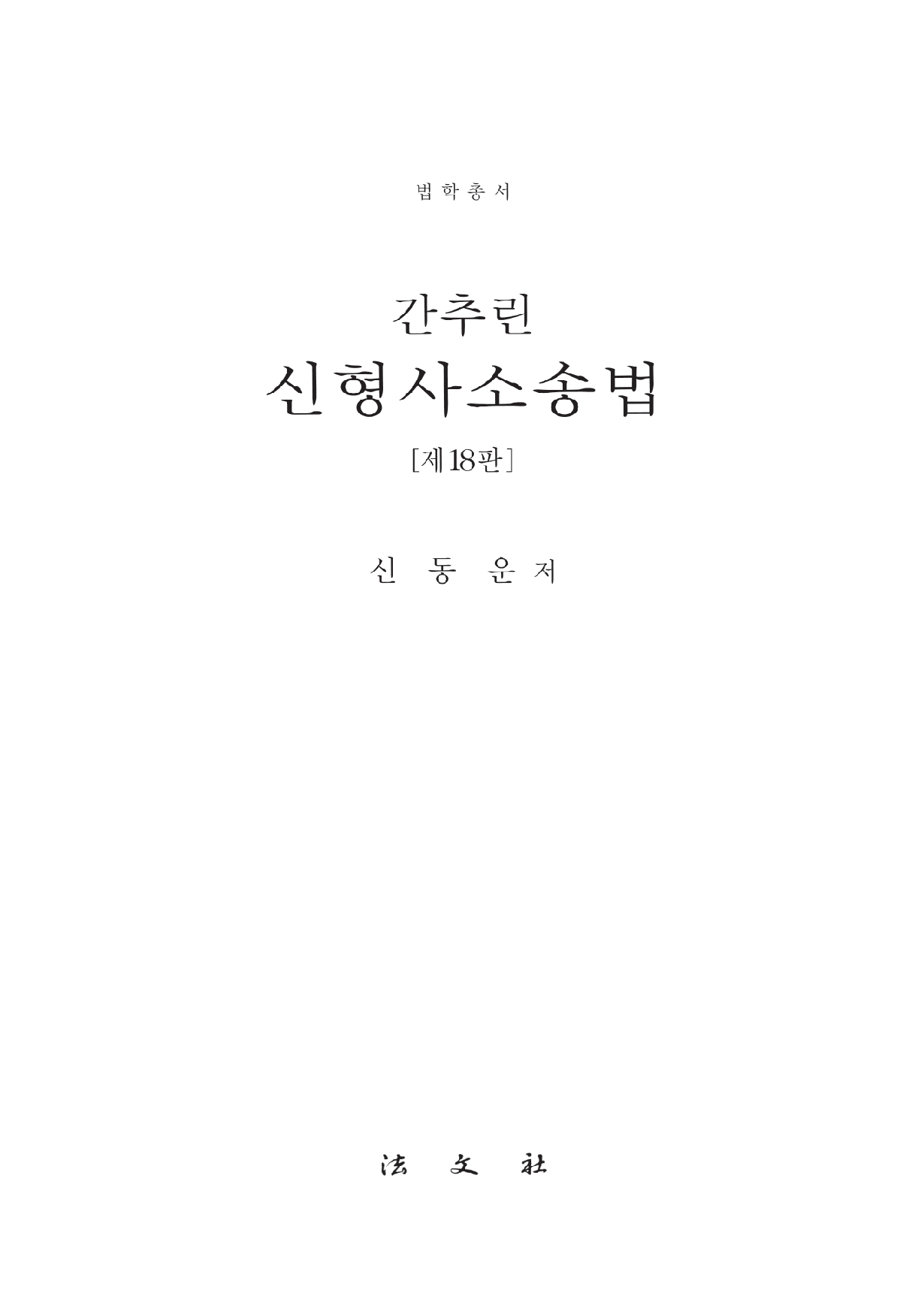 이번에 “간추린 신형사소송법” 제18판을 내어놓게 되었다. 제18판에 이르기까지 변함없이 성원해 주신 독자 여러분들께 깊이 감사드린다.