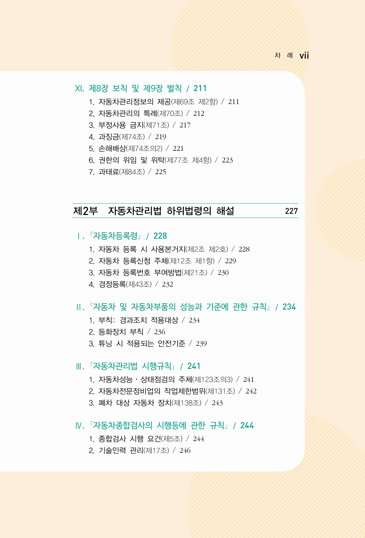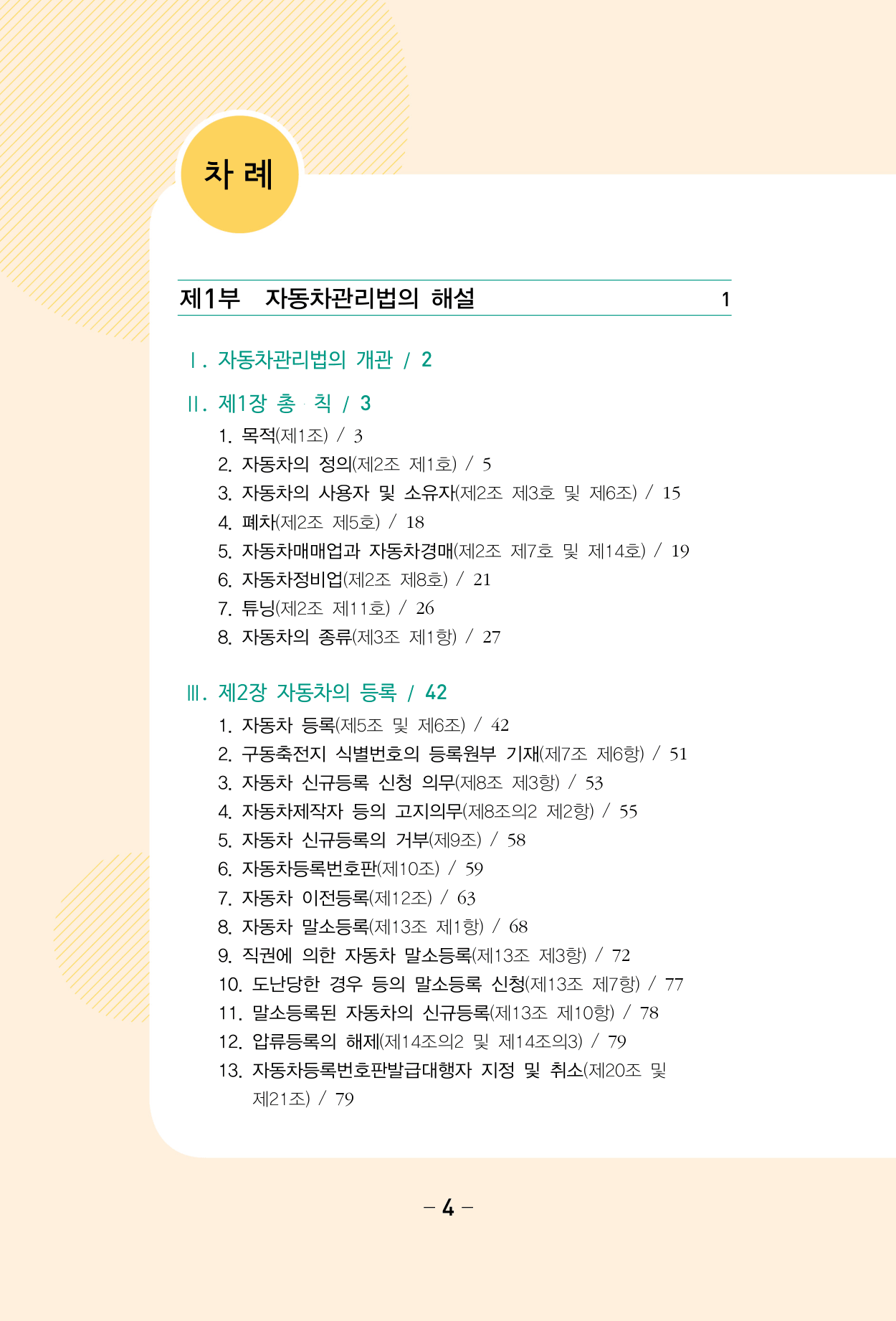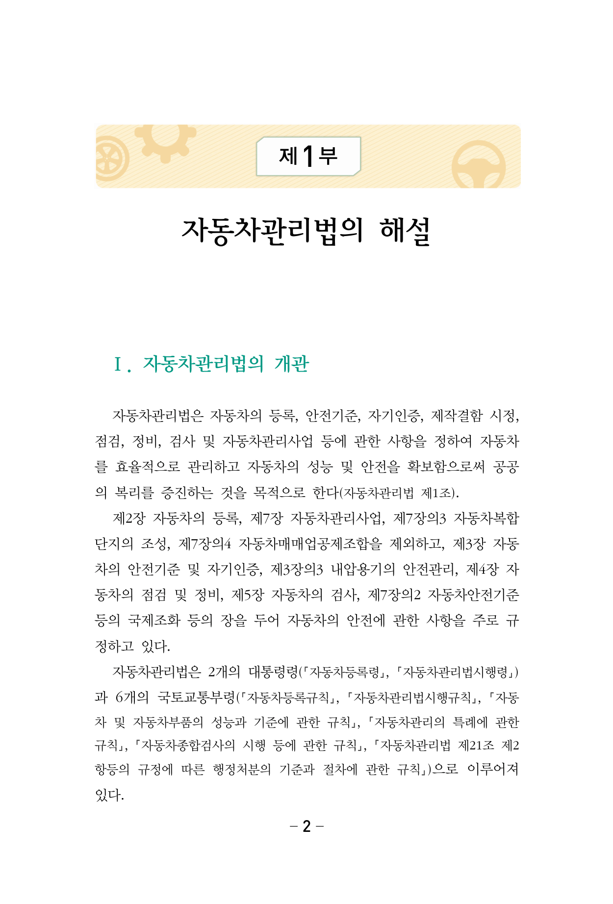 이 책은 자동차관리법에 대해 어렵다고 생각되는 부분을 설명하였다.