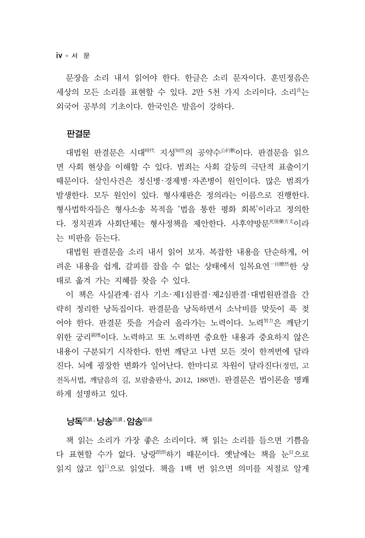대법원 판례를 소리 내어 읽고 훈련하면서 국어・문장 공부,・사회 이해,・범죄 이해,・법률 이해,・법리 이해,・형사재판 이해에 도움이 되기를 바란다.